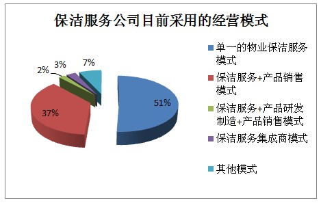 現(xiàn)階段,大部分的物業(yè)保潔公司還是采用專業(yè)化單一的保潔服務(wù)發(fā)展模式,在這物業(yè)保潔的市場(chǎng)里不斷發(fā)展壯大,逐漸形成了保潔服務(wù)高度專業(yè)化的競(jìng)爭(zhēng)優(yōu)勢(shì)。調(diào)查結(jié)果顯示:?jiǎn)我坏奈飿I(yè)保潔服務(wù)模仍被采用的企業(yè)占51%,保潔服務(wù)+產(chǎn)品銷售的發(fā)展模式占37%,是目前物業(yè)保潔服務(wù)公司的兩大經(jīng)營模式。